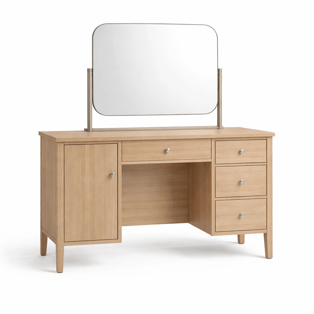 Tocador de madera con espejo y almacenamiento roble claro