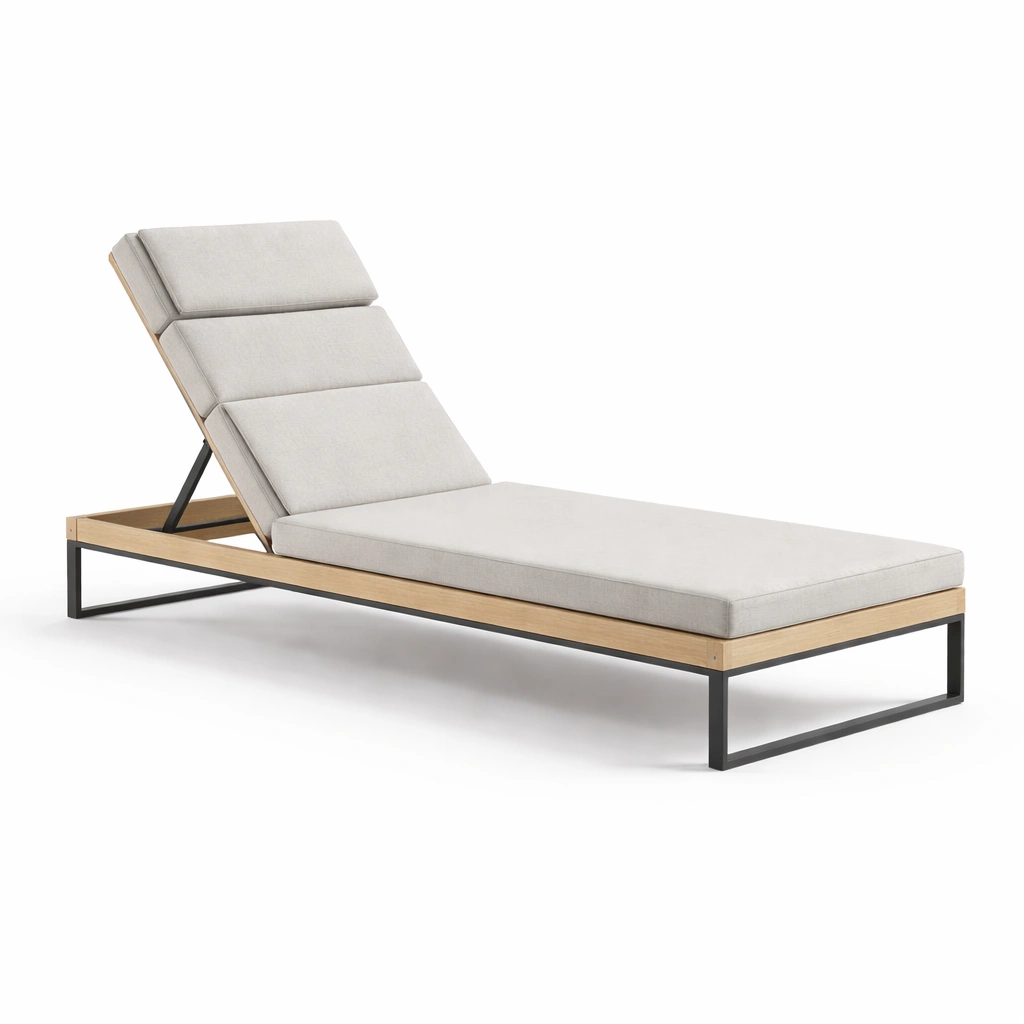 Tumbona de madera y metal con cojin beige