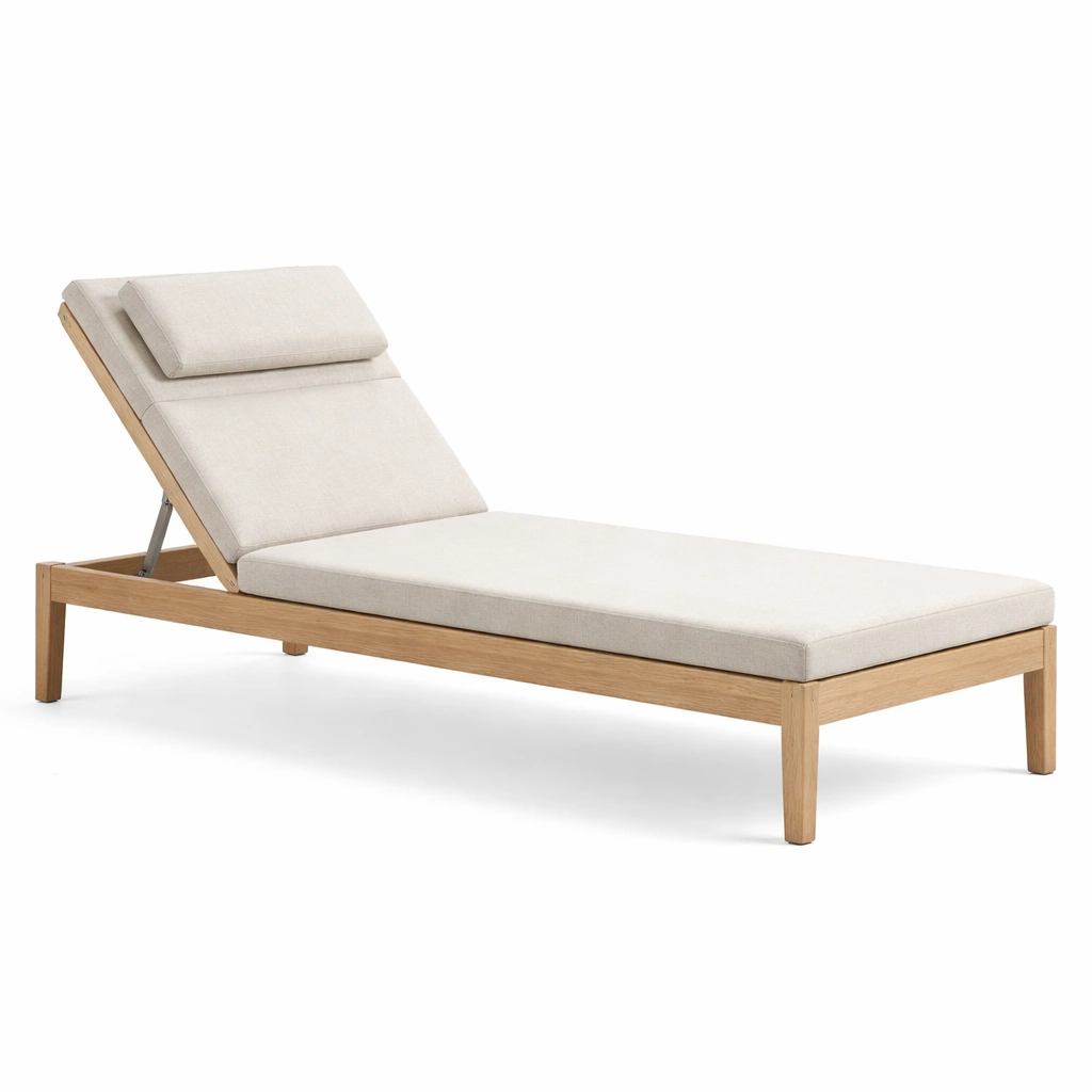 Tumbona de madera de teca con cojines de poliester crema