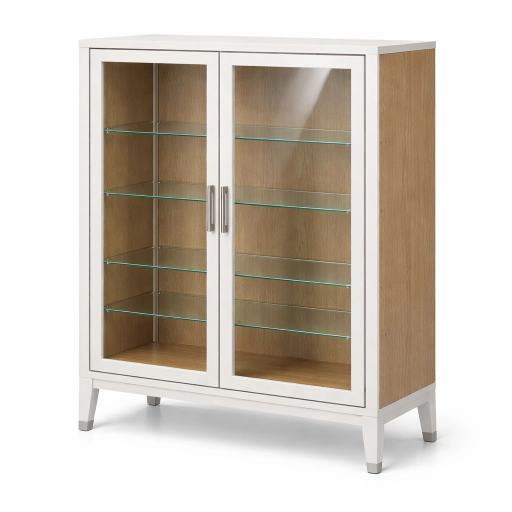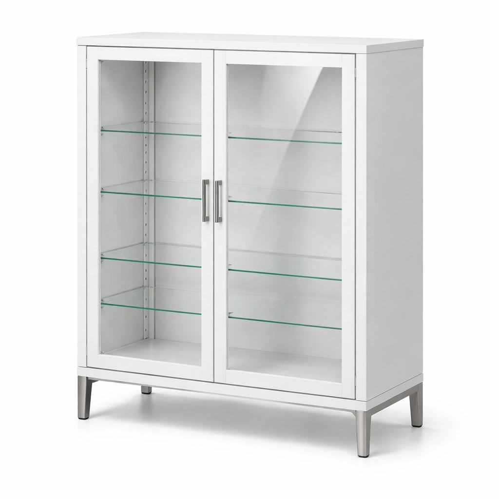 Vitrina blanca de mdf con puertas de vidrio templado