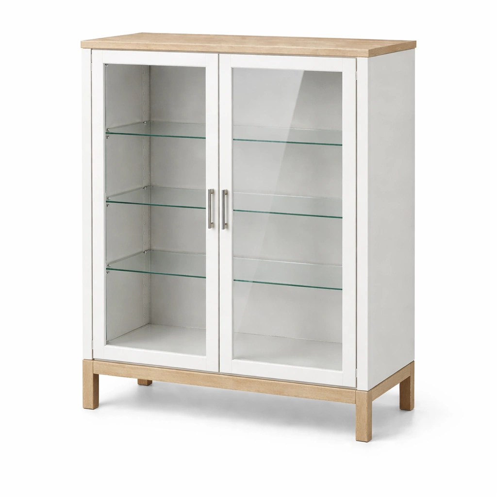 Vitrina de mdf y vidrio templado con estantes ajustables blanco roble